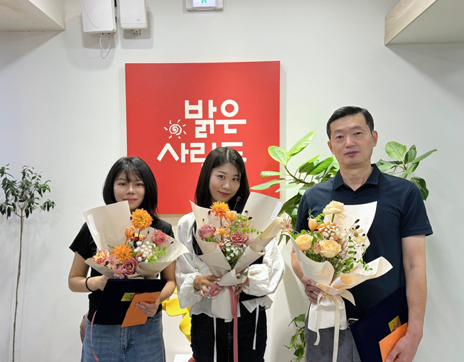 세 분에게는 근사한 주홍빛 꽃다발과 축하금이 전해졌습니다.